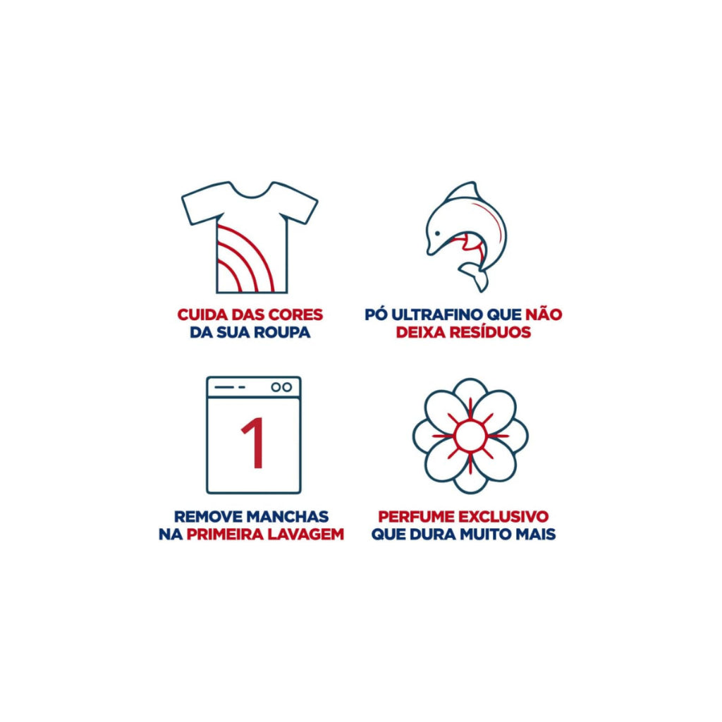 Além de oferecer higienização impecável, o sabão possui um perfume exclusivo que dura por muito mais tempo, deixando suas roupas com um frescor irresistível. A nova fórmula sem fosfato e com ingredientes biodegradáveis é uma escolha sustentável que preserva os rios e oceanos, ajudando você a cuidar não apenas das suas roupas, mas também do planeta!