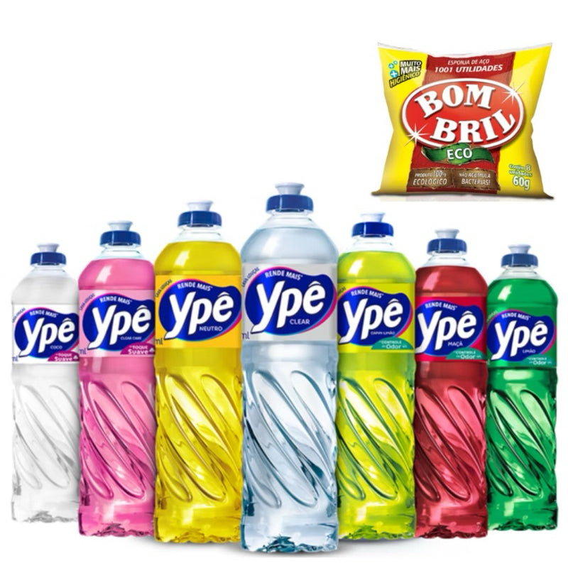 Kit Detergente Ypê Sortido + Esponja de Aço Bom Bril Eco